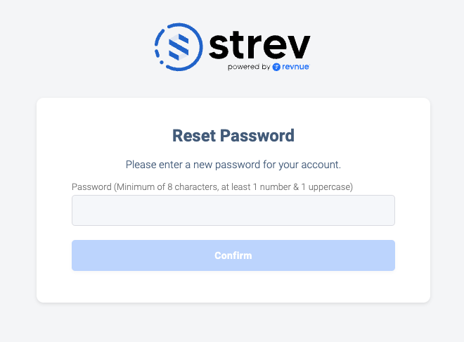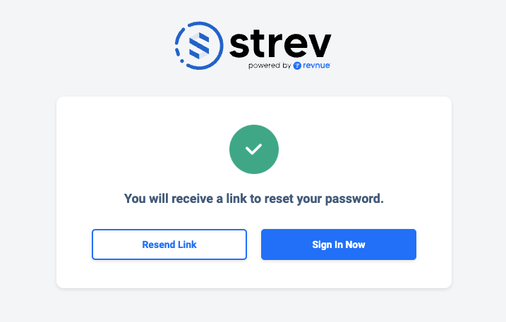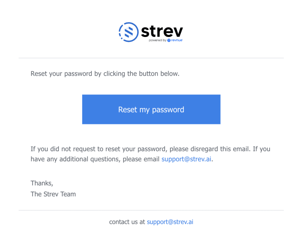 5. A password reset email with the subject “Strev Reset Password Instructions” will be sent to your email address.