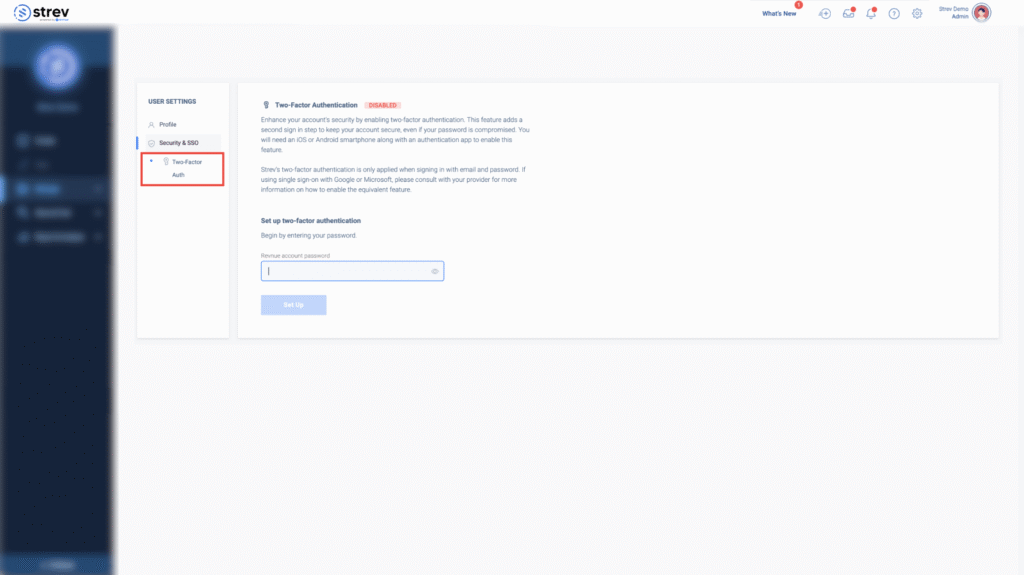Follow these simple steps to enable Two-Factor Authentication on your Strev account: