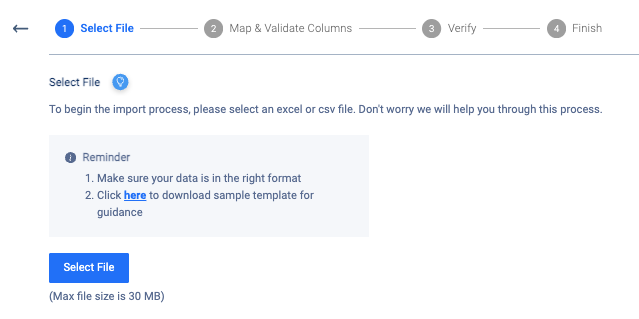 - Save the file as .csv or .xlsx (max size: 30MB).