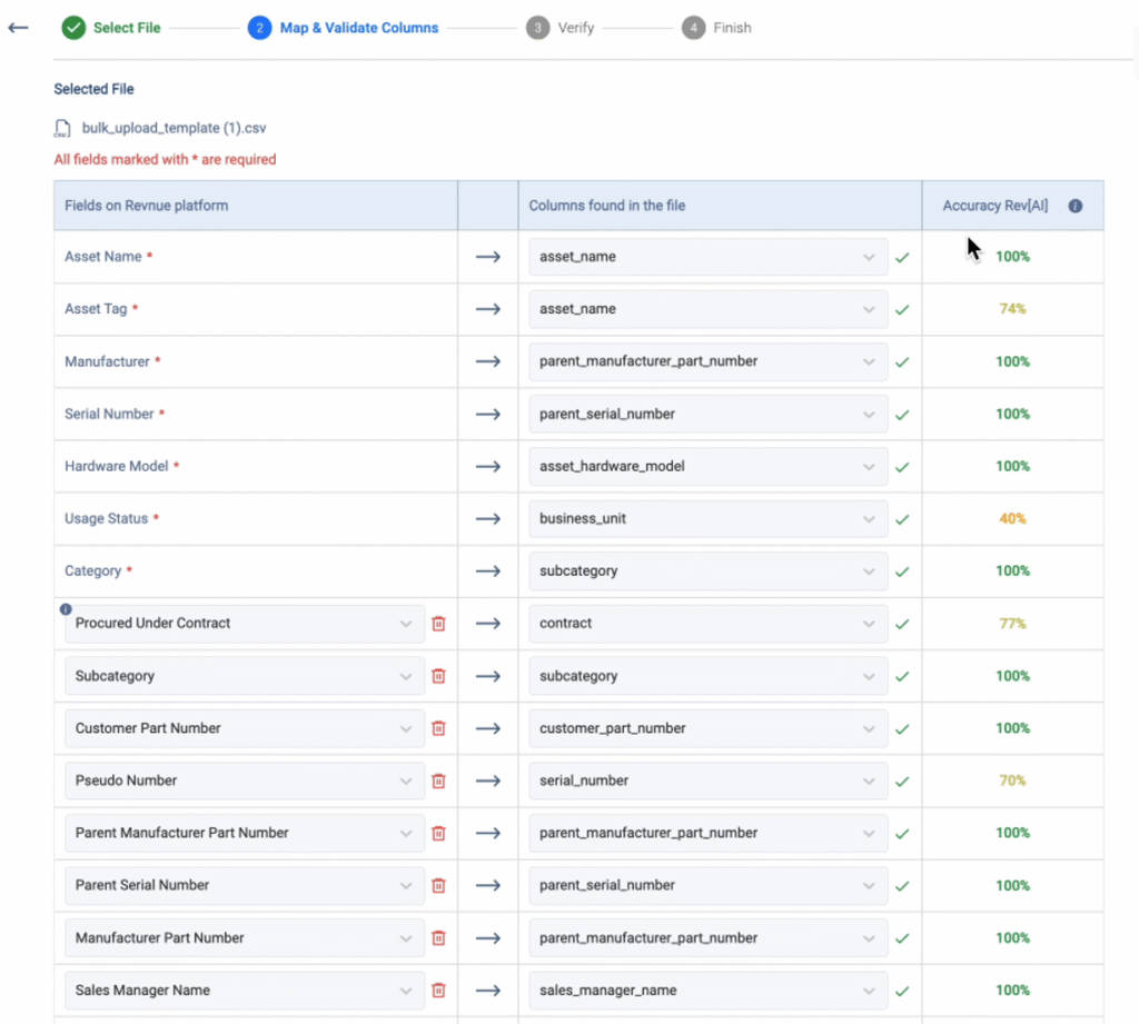 - Review and confirm that all mandatory fields (marked with *) are mapped properly.